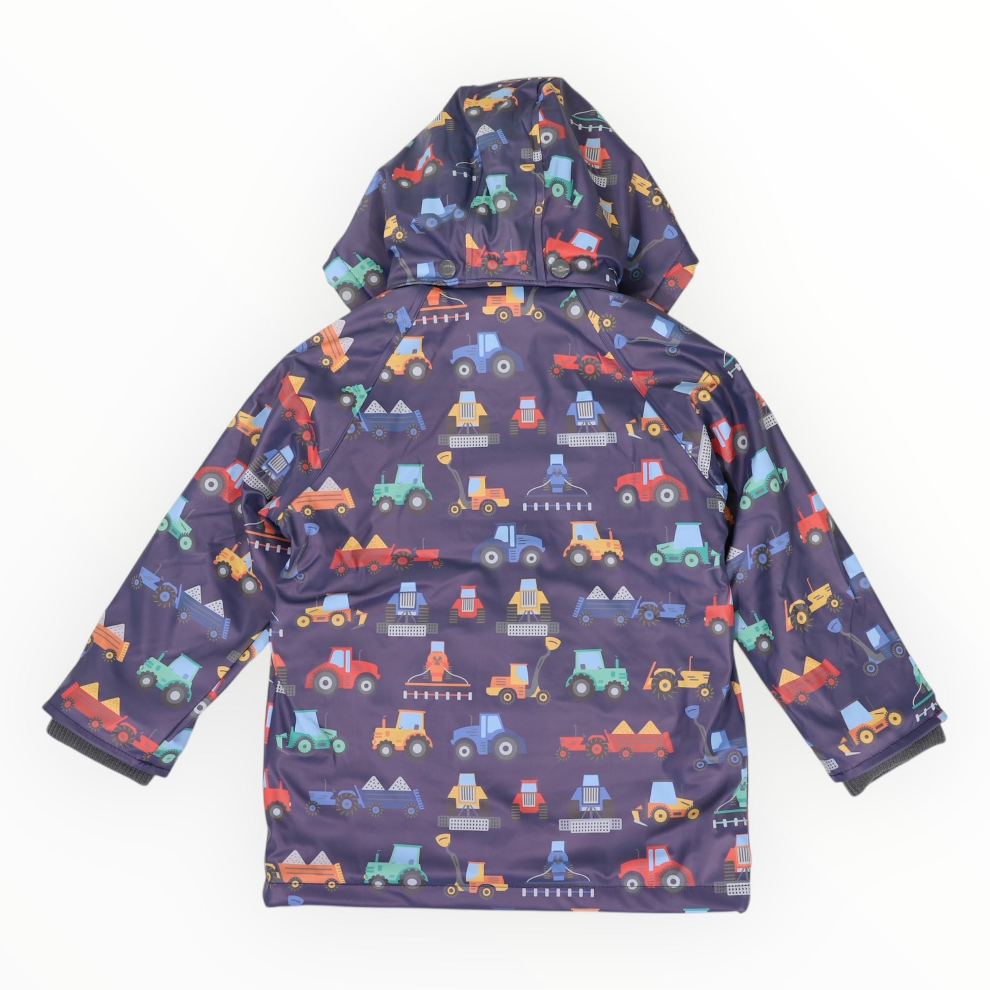Make rainy days an adventure with Korango's Farm Machine Print Raincoat in Navy! Featuring a bright and playful farm machinery design, this raincoat is sure to bring big smiles to little faces. With a waterproof outer shell and a snug fleece lining, kids stay dry, warm, and ready for puddle-jumping fun. The removable hood is perfect for switching things up, and the handy pockets are great for stashing secret treasures found along the way. Secured with a trusty YKK zipper and press stud buttons, this raincoat is made for nonstop outdoor excitement. Rainy days just got a whole lot more exciting!